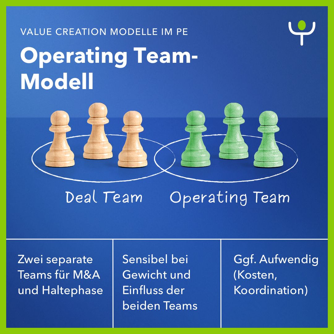 Die Organisation des OPs-Teams muss klar sein. Die gängigsten Modelle orientieren sich an den Assets (Jeder OPs-Team-Member betreut eine Zahl von Assets oder, bei größeren PE-Firmen, eine ‚Practice‘); andere Modelle orientieren sich an übergreifenden Fähigkeiten der Assets: Top-Line-Optimierung, Digitalisierung, Performance Improvement.